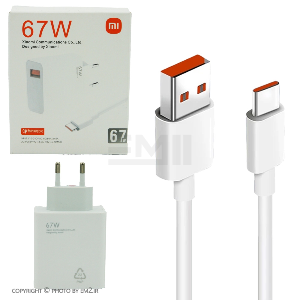 شارژر دیواری شیائومی مدل 67W به همراه تبدیل USB-C